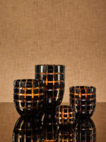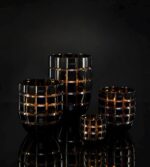 Šios žvakių vazos pagamintos iš tikro krikštolo. Žvakė sudaryta iš krikštolinės vazos bei atskiro indėklo su vašku. Išdegus žvakei, Jums tereikės pasikeisti jos indėklą. Šį piešinį nupiešiau Zanzibaro paplūdimyje. Vėlai vakare, kai vanduo pasitraukia, matote šlapią paplūdimį, kuriame lieka horizontalios netobulos, tačiau labai ryškios juostos. Šį gamtos reiškinį, tokį gražų ir natūralų, atspindėjau šiame stebuklingame dizaine.